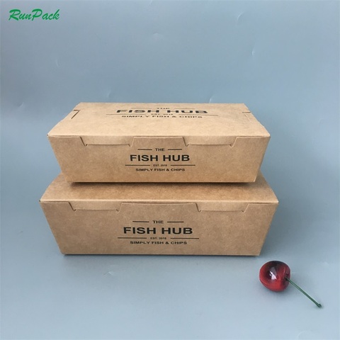 Boîtes de papier kraft brun imprimé avec logo personnalisé pour restaurant à emporter