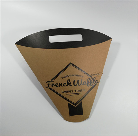 Takeaway Waffle Disposable Food Packaging Paper Crepe Box Paper Cone Holder