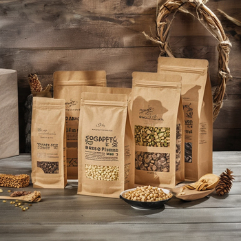 Prácticas bolsas de pie desechables personalizadas para dulces, bolsas de papel para alimentos, embalaje Kraft impreso sellable